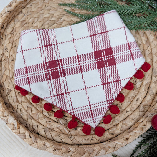 Holiday Cheer Reversible Snap On Dog Bandana With Pom Pom Trim