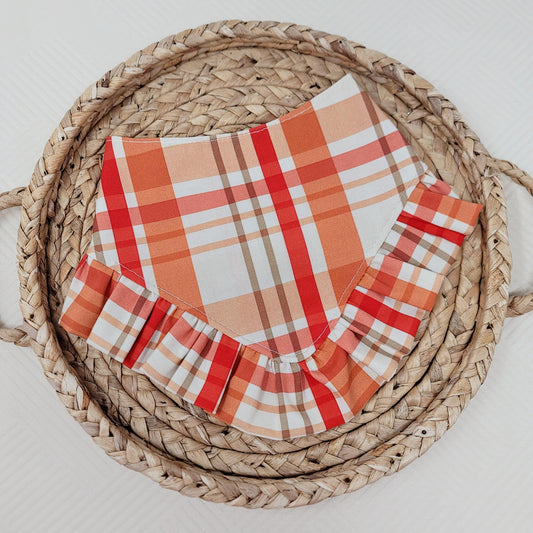Red and Orange Fall Plaid Dog Bandana With or Without Ruffle Trim