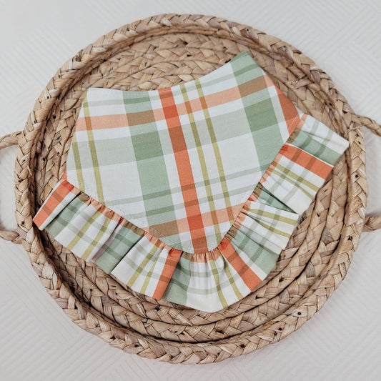 Green and Brown Fall Plaid Dog Bandana With or Without Ruffle Trim