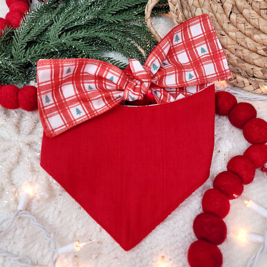 Red Gingham Christmas Tree Dog Bandana With or Without Pom Pom Trim