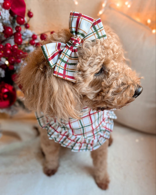 Fa La La Christmas Tree and Plaid Reversible Dog Bandana With Optional Ruffle Trim