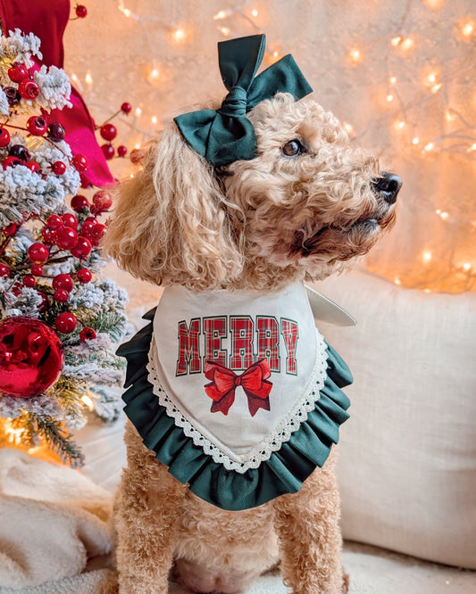 Merry With Bow Reversible Dog Bandana With Optional Ruffle Trim