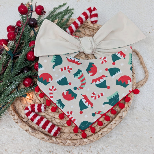 Santa's Cutest Elf Reversible Dog Bandana With Optional Pom Pom Trim