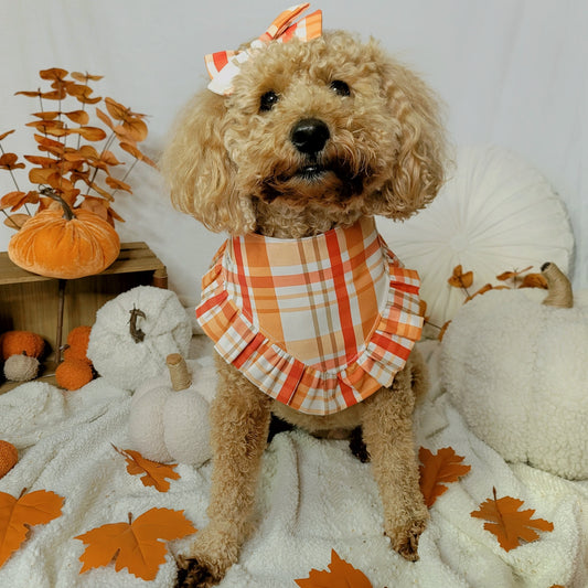 Red and Orange Fall Plaid Dog Bandana With or Without Ruffle Trim