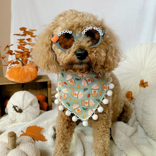 Pink Pumpkin Spice Dog Bandana With or Without Pom Pom Trim