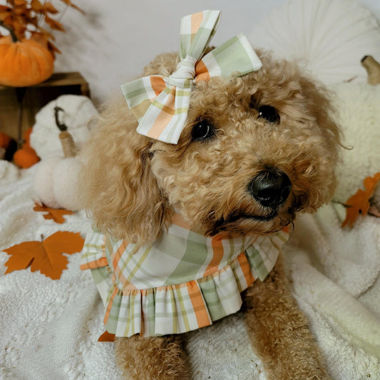 Green and Brown Fall Plaid Dog Bandana With or Without Ruffle Trim