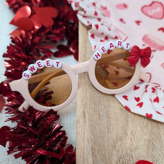 Light Pink Sweet Heart Beaded Sunglasses
